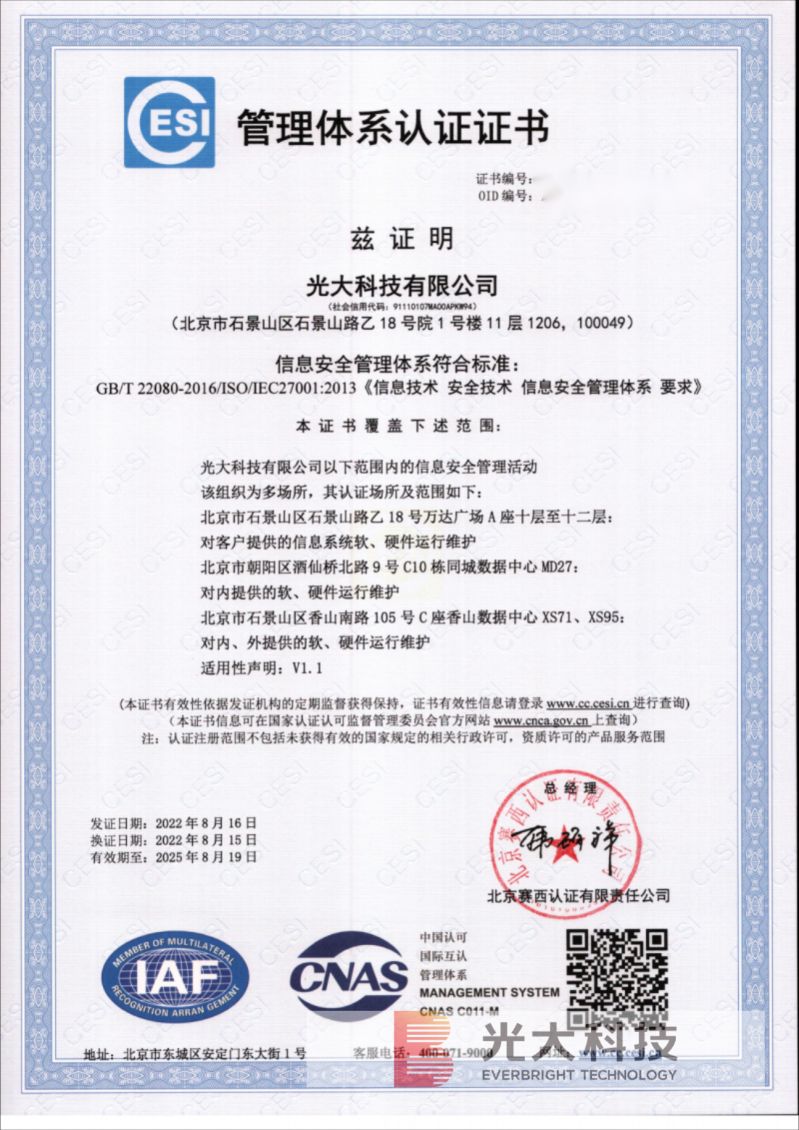 近年来,澳门金沙集团 不断优化自身管理机制,遵循IT服务管理体系、信息安全管理体系和质量管理体系,贯彻相关管理方针,得到了认证专家的一致肯定,同时也说明澳门金沙集团 在合规经营的道路上为客户信息安全、IT服务及质量把控方面的提供全面保障。