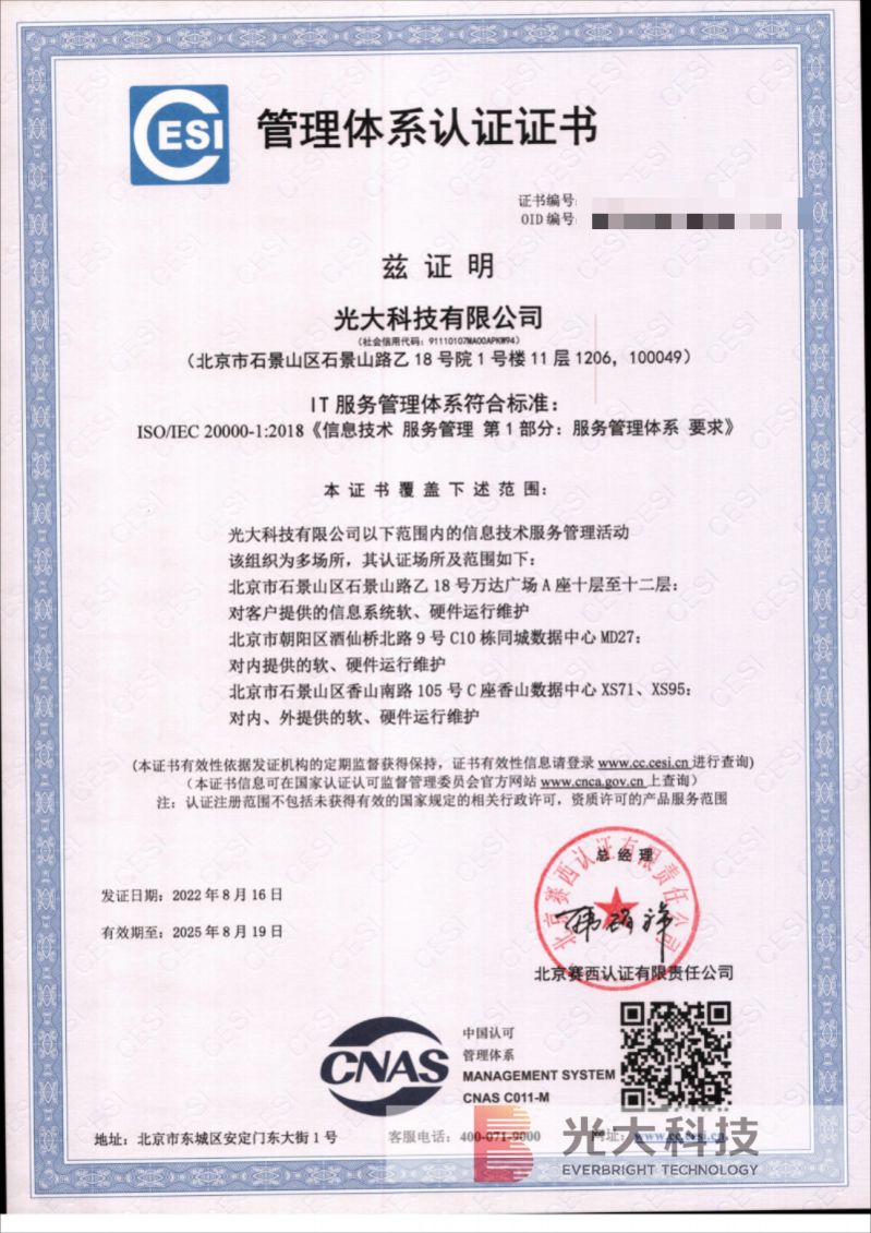 是全球认可的信息技术服务管理标准,被广泛认可为评估IT服务管理流程的原则基础。该标准定义了建立、实施、运作、监控、评审、维护和改进一套全面的、紧密相关且有效的服务管理所需的IT服务管理体系(ITSM)模型, 也是衡量全球企业IT服务和运营管理水平的重要标志,被誉为控制IT服务风险、提高整体服务水平的国际级指引。
