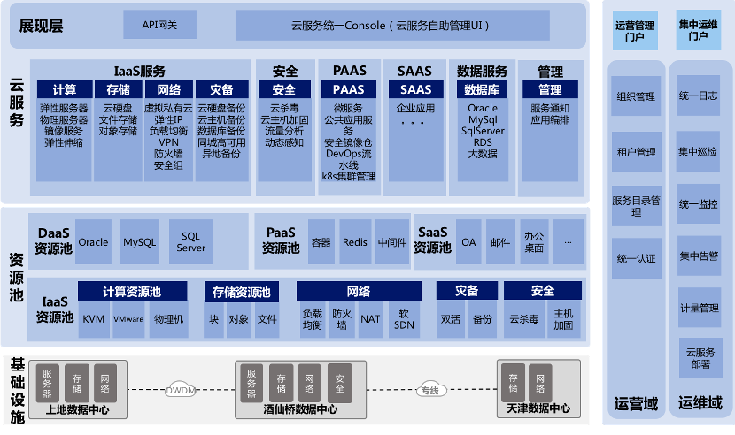 云擎平台是物理分散、逻辑统一、业务驱动、云管协同、业务感知的公有云平台,提供企业级IaaS、PaaS服务,可支持企业或机构业务的持续发展,能满足对业务全生命周期的管理。