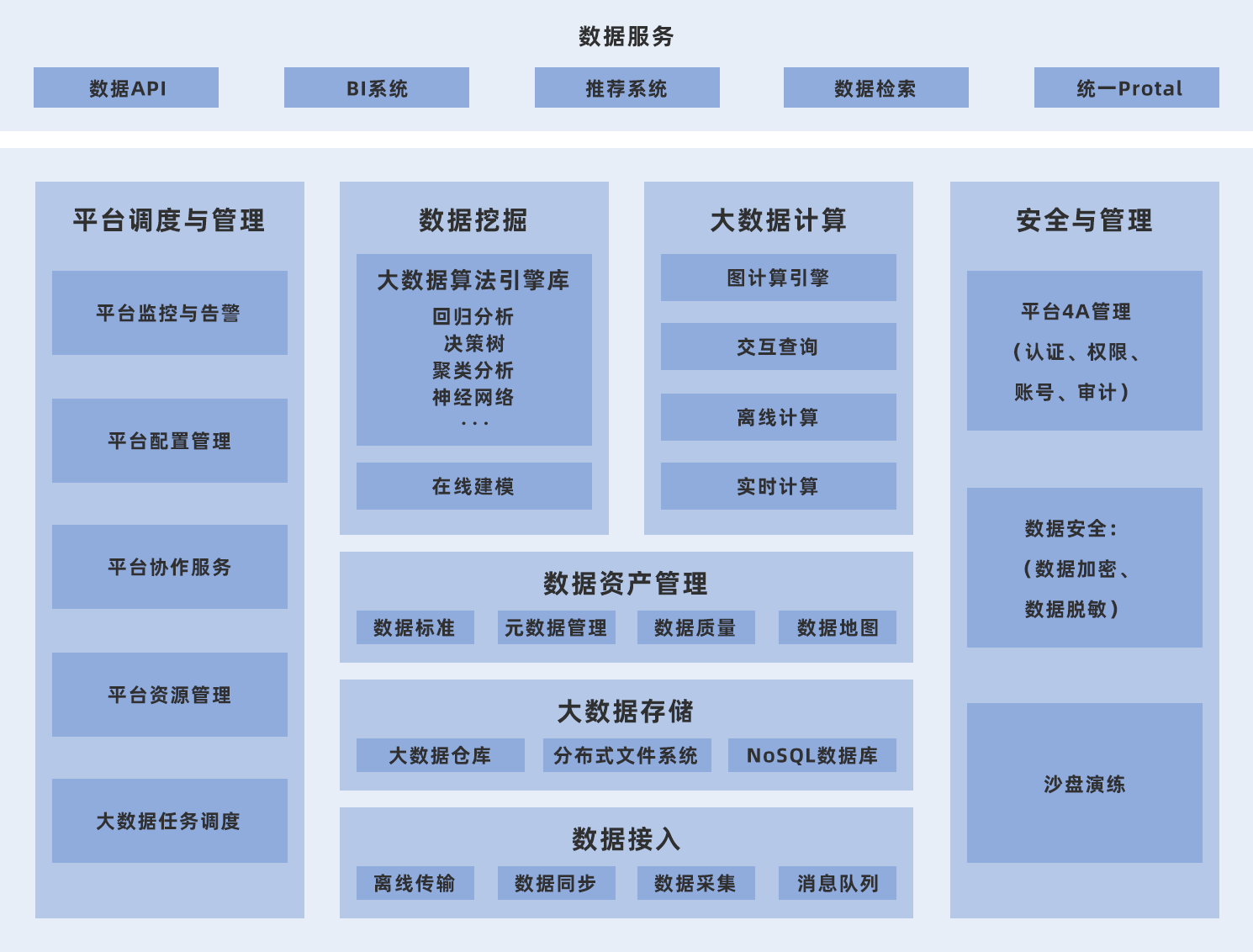 大数据平台套件完整覆盖数据抽取、转换、加载、建模、分析、报表呈现、数据治理等数仓建设环节,快速建设企业级数据仓库和数据集市,搭建专属的大数据应用。通过大数据平台套件,可显著降低基于企业数据仓库的数据应用开发周期,降低开发成本,还可大大降低数据仓库、数据处理、数据应用的运维成本。