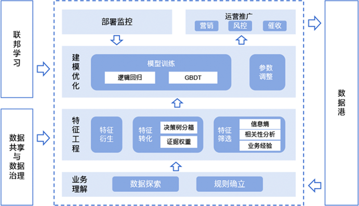 智鲲-阳光评分由澳门金沙集团 和光大银行联合研发,以光大集团丰富的客户业务表现数据为基础,以综合履约能力、客户活跃与生命周期管理、客户综合收益评估为主体,覆盖多个场景和产品,用数据科学的手段量化客户属性的评分体系,旨在为客户提供更加优质的产品与服务。随着集团数据港的建设,特别是联合学习平台的搭建,评分方案和服务向集团成员辐射输出。