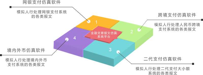 金融交易报文仿真系统是模拟人民银行和各银行的二代支付系统、网银支付系统、人民币境外支付系统、境内货币支付系统对接,完成各个支付系统的报文收发以及业务逻辑处理的系统,可以提高各银行支付系统开发、测试效率,是在多年支付系统的行业经验上自主研发出的产品及解决方案。